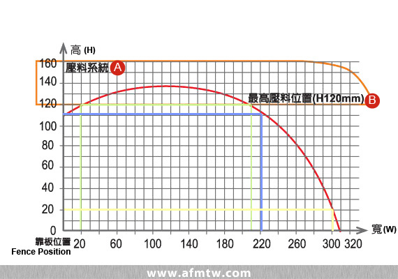 型號 AF-20 AF-20-24 AF-20-30 鋸切角度 +45° ~ 0° ~ -45° +45° ~ 0° ~ -45° +45° ~ 0° ~ -45° 鋸片轉速 (R.P.M.) 3000 2000 1500 鋸片尺寸 20″x1″孔徑 24″x1″孔徑 30″x50mm孔徑 工作台面積 (mm) 920 x 650 1140 x 750 1327 x 640 工作台離地高度 (mm) 875 920 1070 馬力 (Hp) 7.5 7.5 10 所需壓力 (kgs/cm2) 4 ~ 6 4 ~ 6 4 ~ 6 機械尺寸 (mm) 1200 x 1090 x 1780 1480 x 1350 x 2100 1660 x 1400 x 2210 裝箱尺寸 (mm) 1320 x 1210 x 1980 1600 x 1470 x 2260 1780 x 1520 x 2300 淨 / 毛重 (kgs) 500 / 610 800 / 920 1300 / 1500 此頁面之機械中規格及資訊僅供參考,若有更動恕不另行通知。本公司保留變更產品設計及修改的權利。